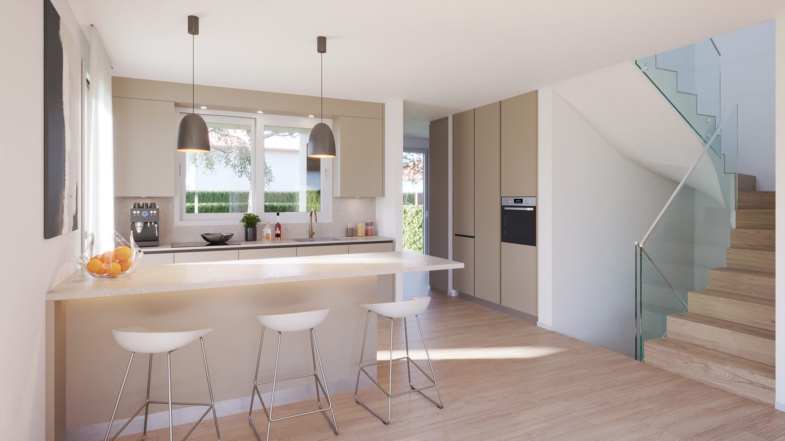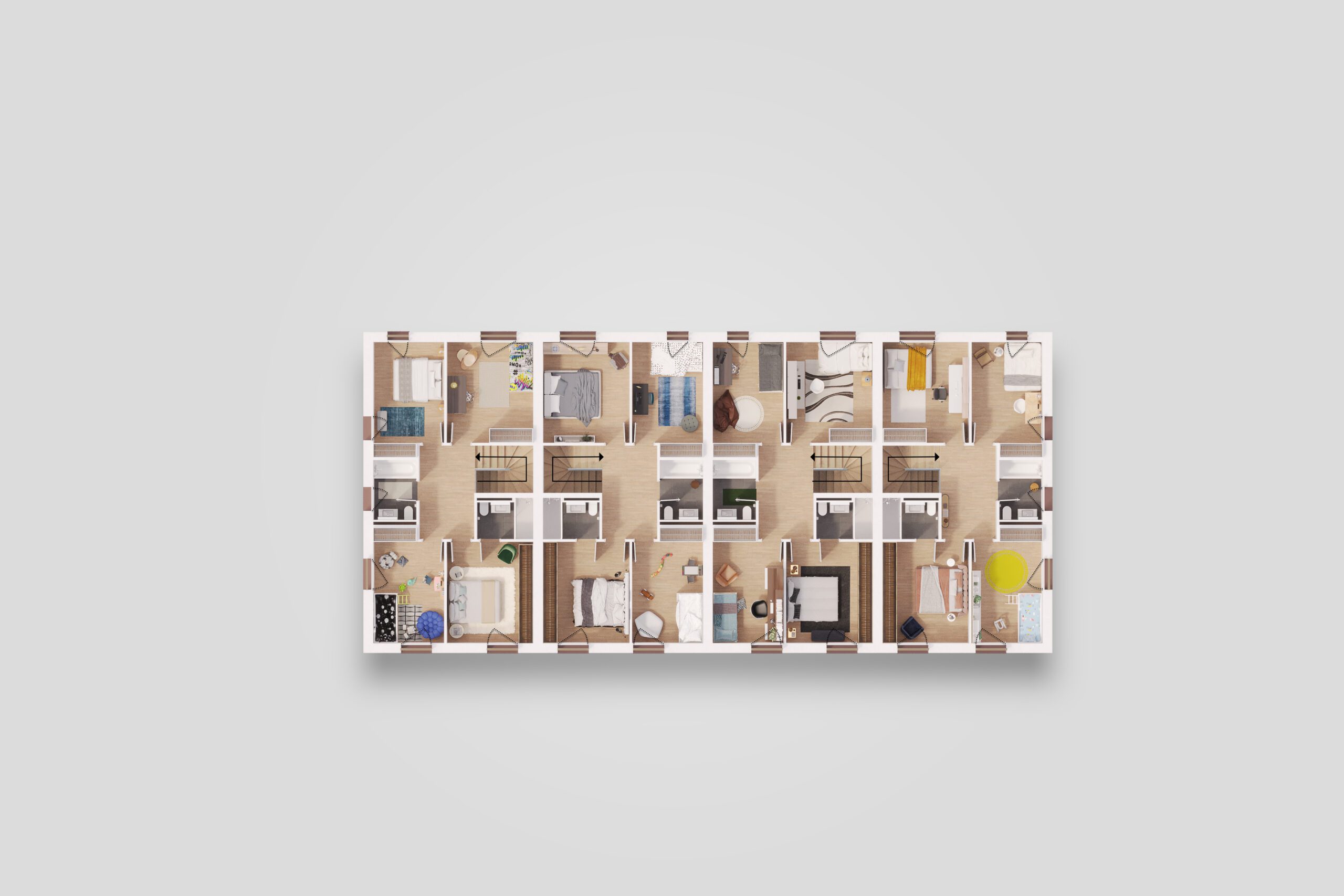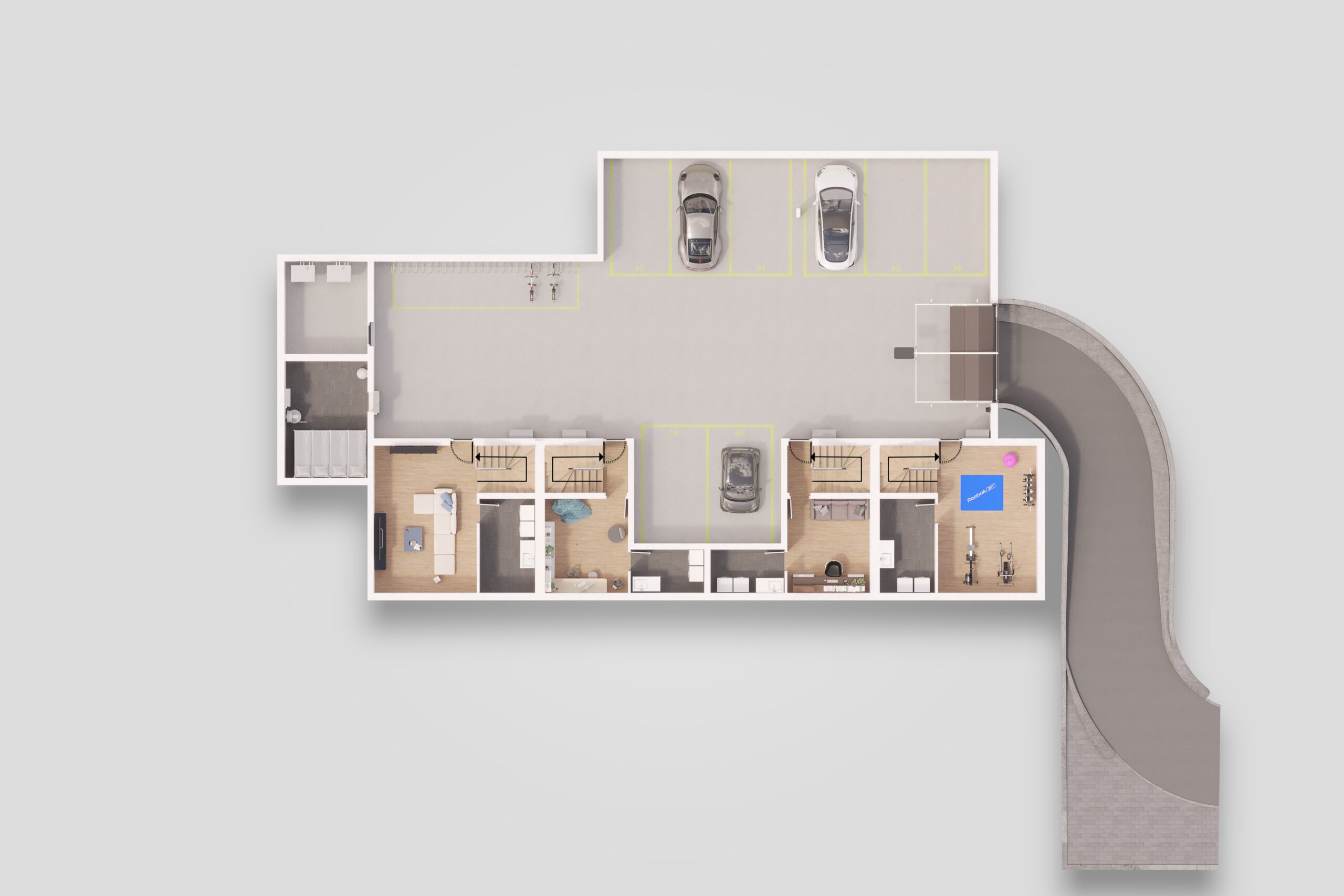 Réalisation de différentes vues de quatre villas contiguës situées chemin de la Ranchée 12 à Confignon (GE). Réalisation d’images extérieures et intérieures ainsi que des plans coupes des différents niveaux.